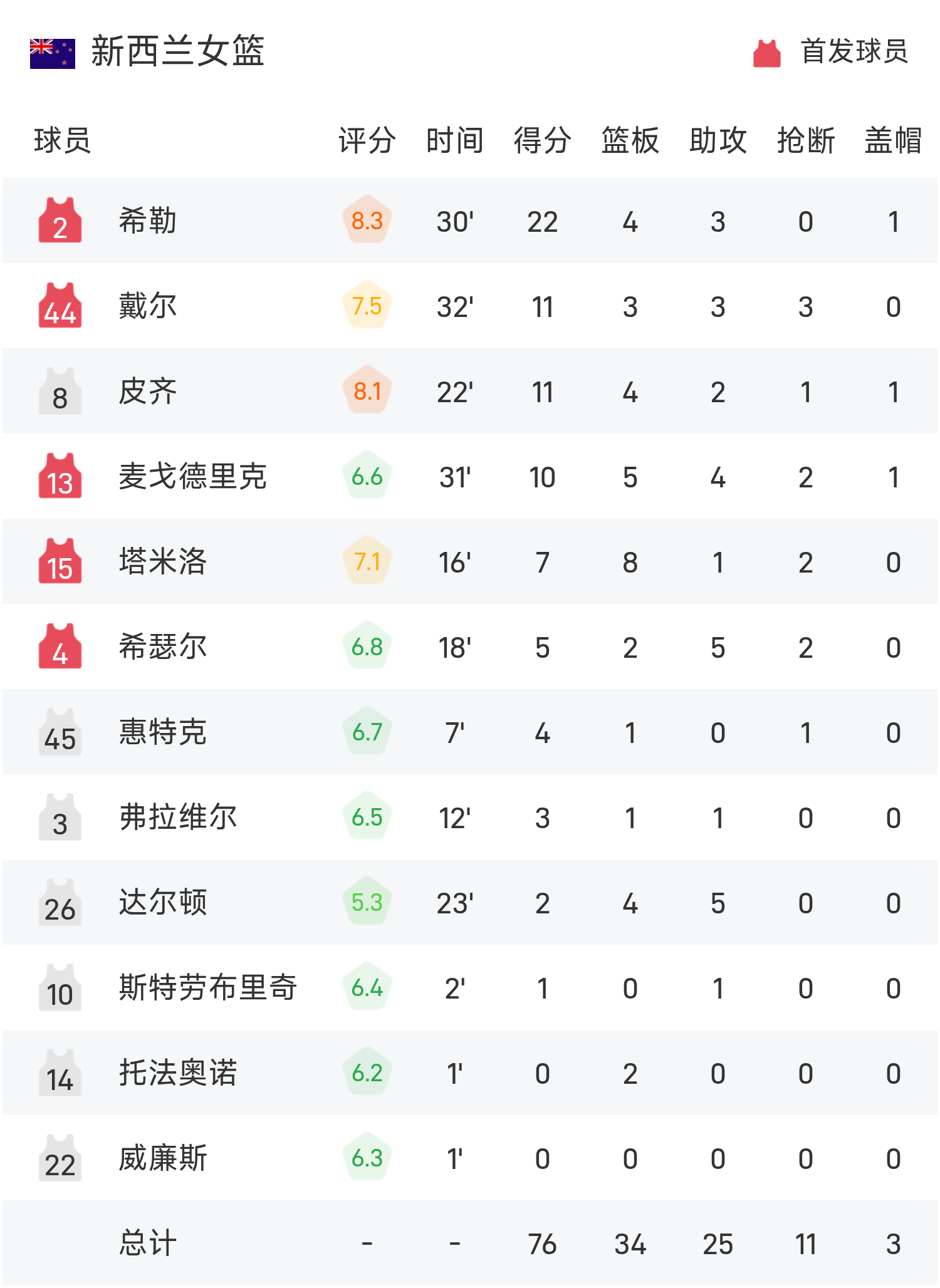 新西兰女篮末节发力,一度将比分追至76平。最后一攻,韩国女篮中锋朴智秀中圈接球后直接杀入篮下迎着对抗完成上篮!韩国女篮2分险胜新西兰女篮!