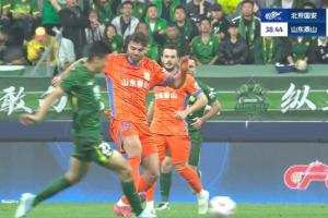 体育资讯04月19日讯 国安vs泰山第37分钟,泽卡踩中王刚脚后跟!裁判果断出示红牌将前者罚下,泰山只剩9人应战!