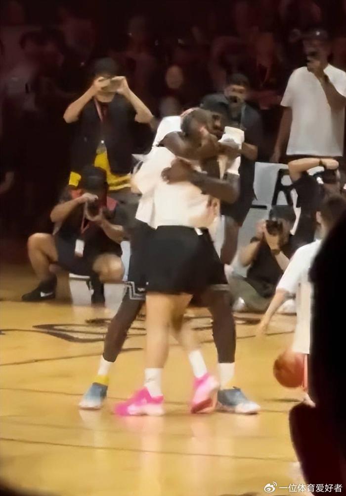 值得注意的是,詹姆斯和李梦紧紧拥抱,拥抱之前两人做着整齐划一的动作,并且称赞李梦是小公主。到了晚上詹姆斯还去了成都双子塔打卡。