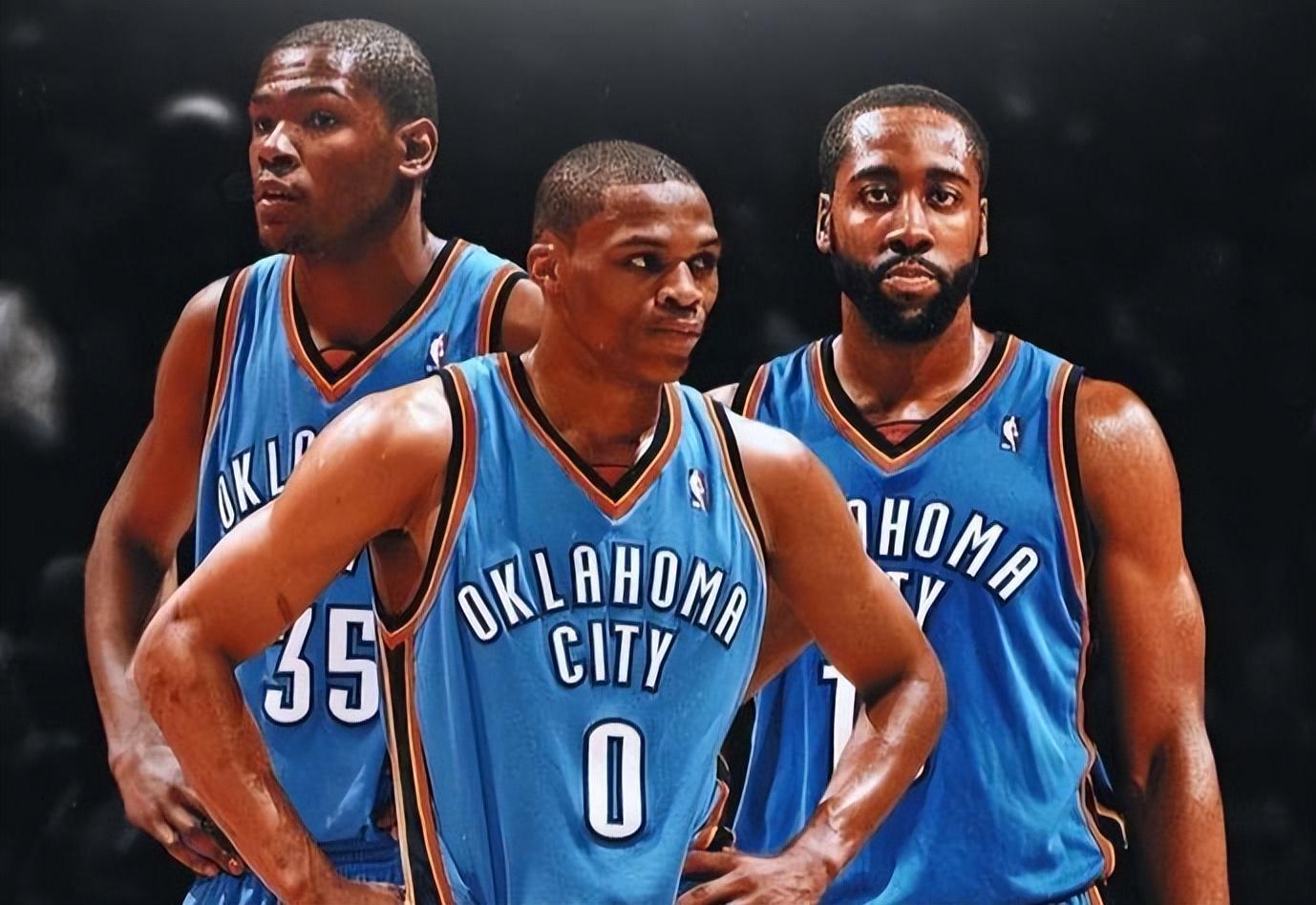 提起雷霆就不得不提初代雷霆三少,2012年杜兰特、威少、哈登三位年轻人带队打入总决赛,原本非常有机会获得总冠军,可惜他们遇到了巅峰抱团三人组,经验不足使得他们遗憾败北,无缘总冠军!虽然输球,但年轻的雷霆让我们看到了无限可能!休赛期到来后,三核心的续约问题搬到桌面,球队分别送给杜兰特5年8500万美元顶薪续约、威少5年8000万美元顶薪续约。而在哈登的续约问题上,双方出现分歧,哈登及其团队想获得一份5年6000w美元的续约合同,但雷霆管理层只想给5600w美元,双方最终没有谈拢,哈登一气之下选择离开雷霆加盟火箭。哈登的离开代表了初代雷霆三少的解体,虽然球队保留了杜兰特与威少的组合,但此后的4个赛季雷霆最好成绩是西部决赛。